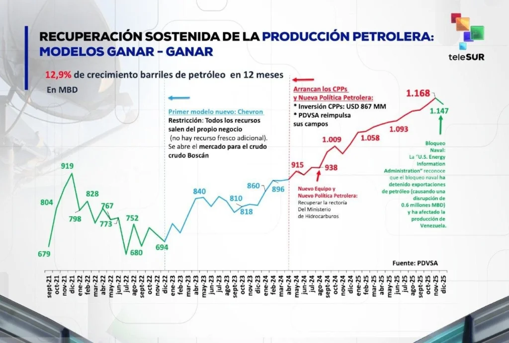 In the oil sector, one of the most significant achievements was reaching a production of 1.2 million barrels per day by December 2025 , thanks in large part to the Productive Participation Contracts (CPP) , which attracted investments of $867 million in 2025. Furthermore, he announced the submission to the National Assembly of the Partial Reform Project of the Organic Hydrocarbons Law , which seeks to give permanent legal status to the investment models of the Anti-Blockade Law, guaranteeing the protection of capital flows that have driven the industry’s recovery.