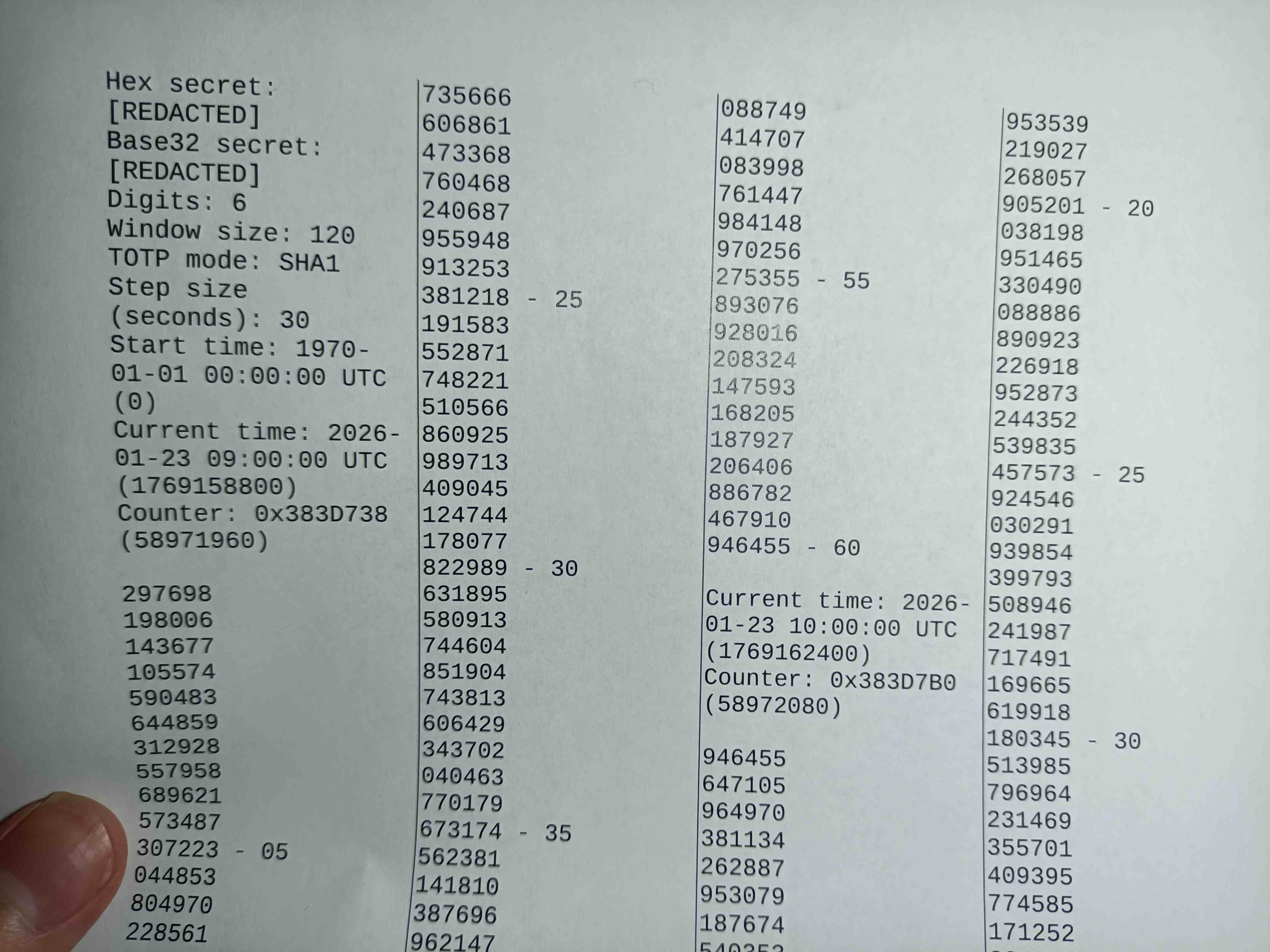 What’s on paper is all there will be, as it doesn’t include the secret for generating additional codes.