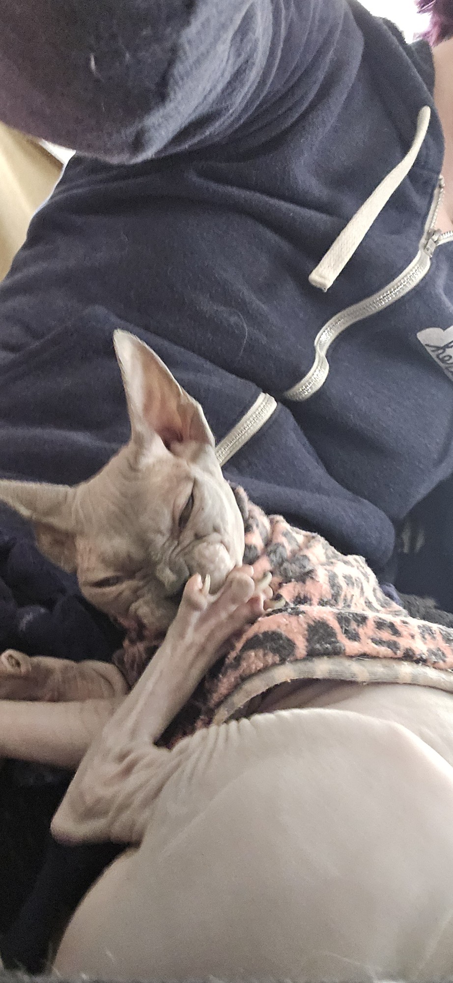 I think so, but I’m not sure to be honest. This lady had imported four sphynxes to breed them and then decided against it and rehomed them all, so that’s how we got her.